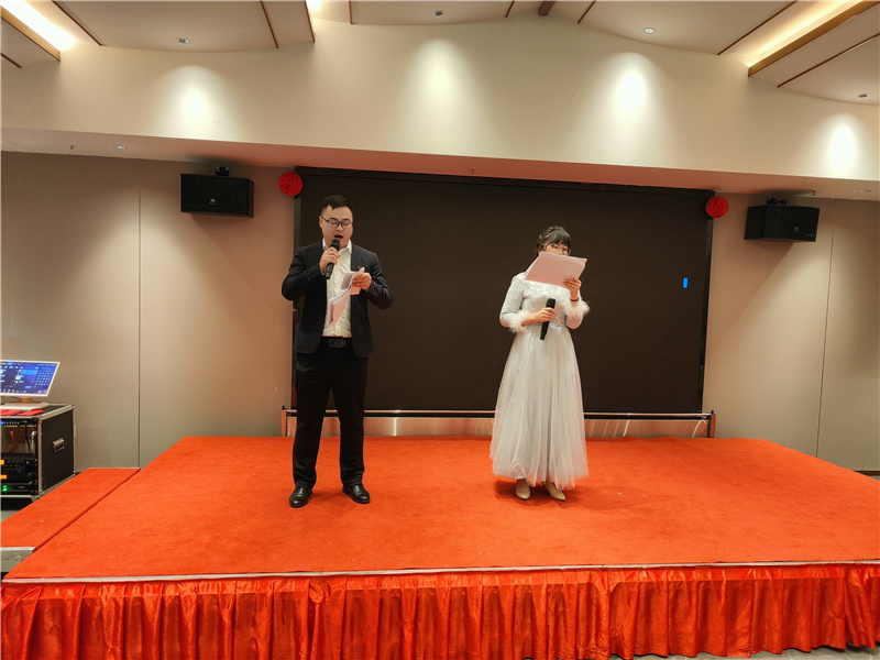 下午5:00伴隨著歡快的歌曲,年會(huì)拉開帷幕,銷售部康永和項(xiàng)目部強(qiáng)文杰主持此次年會(huì)。