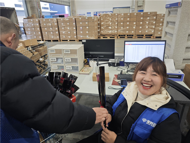 節(jié)日上午,人事行政部陳文娣和王雷推著滿載鮮花的花車,化身“送花使者”,帶著精心準(zhǔn)備的鮮花與小禮品,走進(jìn)總部辦公室和3個倉庫,將飽含謝意的花束送到每一位女性員工手中。