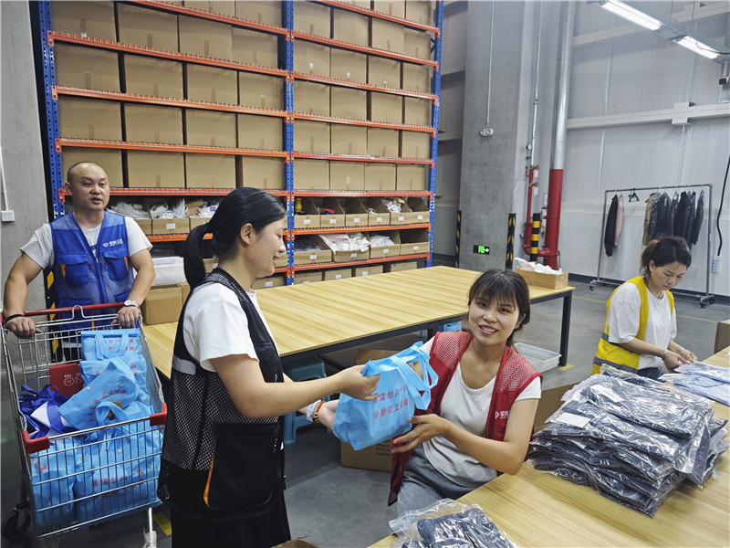 活動當天,寶時云倉人事行政部主管陳文娣和各倉經(jīng)理手持清涼禮包,穿梭在多個倉庫的工位之間,將精心準備的防暑清涼禮包送到每一位員工手中。