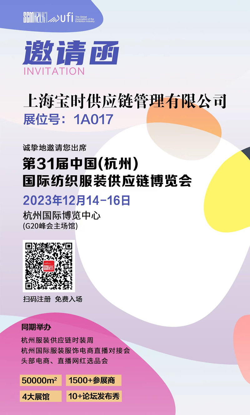 2023年12月14日至16日,杭州國際博覽中心熱鬧非凡,第31屆杭州國際紡織服裝供應(yīng)鏈博覽會(SCM)在此盛大舉行。這一行業(yè)盛會吸引了眾多國內(nèi)外紡織服裝領(lǐng)域的專業(yè)人士和觀眾,共同探討和見證行業(yè)的新趨勢與成果。作為業(yè)內(nèi)專業(yè)服裝倉配一體化服務(wù)商,寶時云倉攜倉配解決方案、智能化無人倉及知名企業(yè)合作案例亮相展會,在服裝行業(yè)進一步打響品牌,贏得眾多客戶青睞。